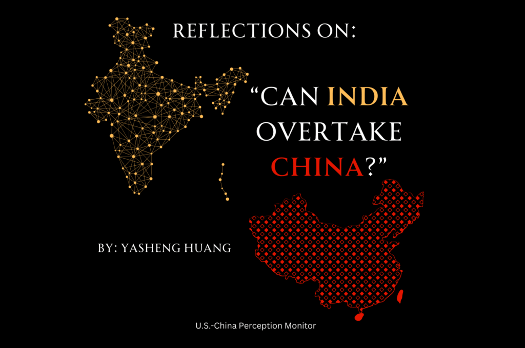 Editor’s note: The U.S.-China Perception Monitor recently interviewed Professor Yasheng Huang of MIT, a fellow at Woodrow Wilson Center, on his new book The Rise and Fall of the EAST. In that interview, we asked: You have done a lot of comparative research on China and India, including coauthoring an article called “Can India Overtake China” more than 20 years ago. Looking at where China and India are today in the 3rd decade of the 21st century, do you still think India will eventually surpass China economically? If yes, why? Professor Huang responded to the question through this essay.