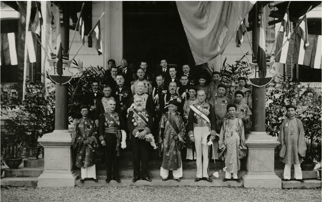 No empire last forever. Governor-General A.C.D. de Graeff (right) with the Regent Ton That Han (center) and the…